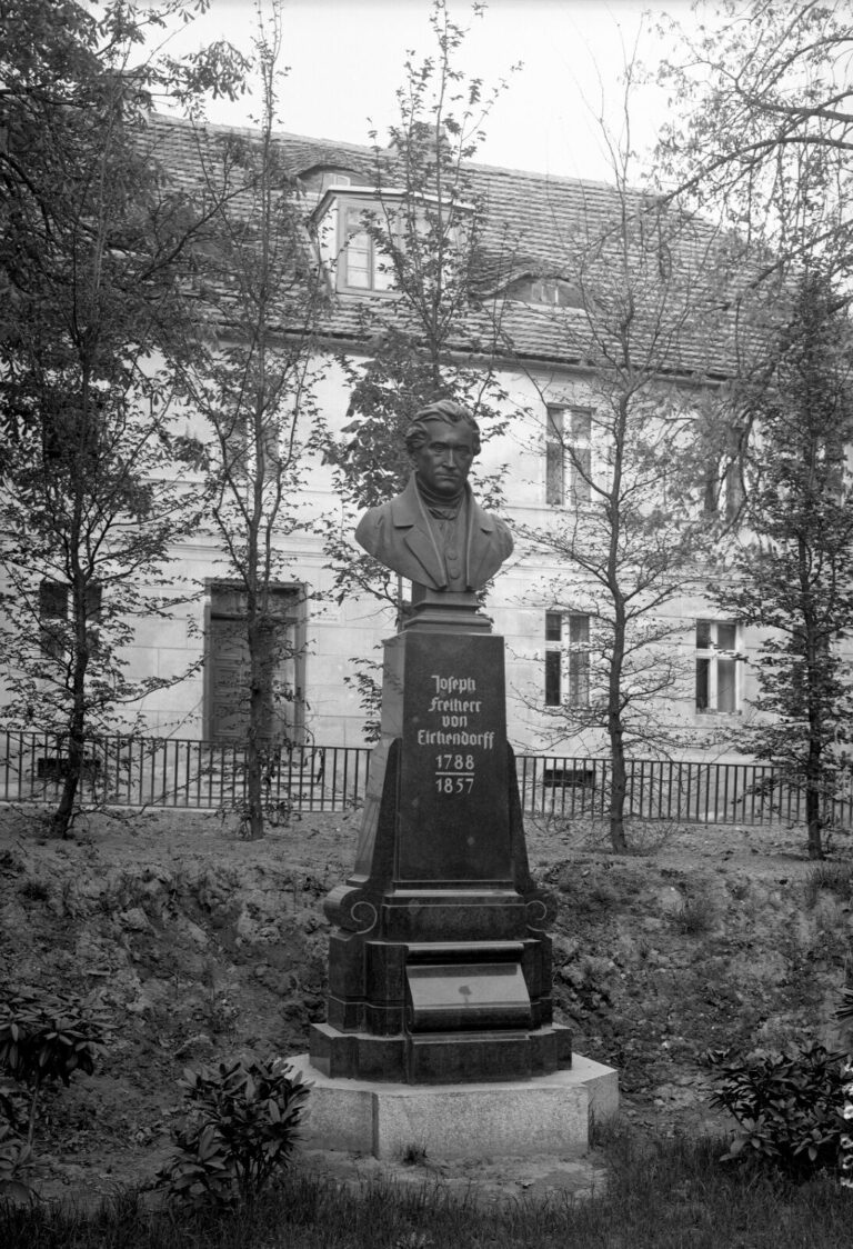 Das Denkmal für Joseph von Eichendorff befindet sich am Sikorski-Platz, auf der Grünanlage vor dem Gebäude des heutigen Wirtschaftsschule.